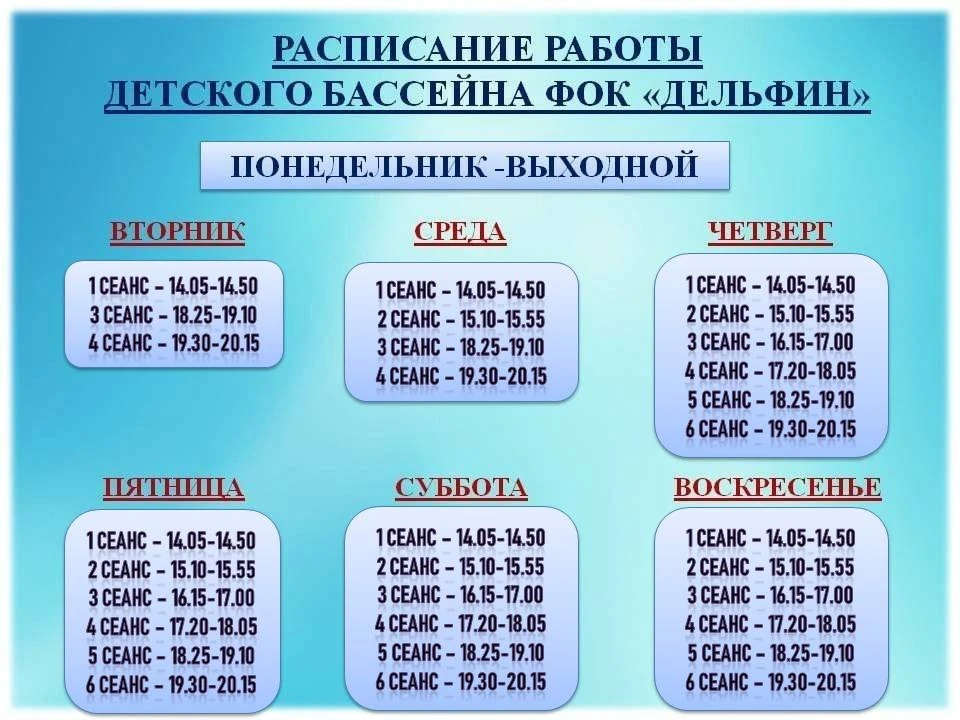 Всё совершенно верно! В понедельник в ФОК «Дельфин» у тренажерного зала выходной.
